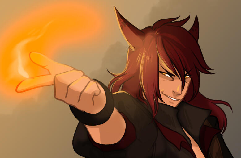 While Tak may appear to be more of a rogue-like type, based on physical appearance alone, he is in fact a skilled mage. He has been in possession of his black mage soulstone for some years, and has thoroughly refined his ability to blow shit up. He only breaks out the magic when he intends to inflict serious damage. When it comes to just hurting people, he'd honestly rather just shoot them in the dick or something. The gun is very convenient.He's much better about it now, but he does still have a habit of throwing a punch when someone really makes him lose his temper. He's underweight and really just not that physically strong, but when it comes to hand-to-hand fighting, he's very quick. Also very wriggly and hard to keep pinned, like a ferret.Aside from the black magic, he's pretty good with his gun. It's usually his go-to in non-life threatening situations. Black magic is still a forbidden practice, so he doesn't go about using it in public. He tends to just go by passing as a regular thaumaturge. His gun, however, he can pull out anywhere. He doesn't even need to fire it, it's often an adequate threat just by pointing it at people.He's got very basic knowledge with healing. (Definitely no expert, but he can do something in a pinch.) He's also fairly adept as creating magical barriers, which is his main form of defense. (He's mostly an offensive type, so this is really the only effective thing he has.)