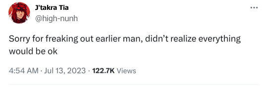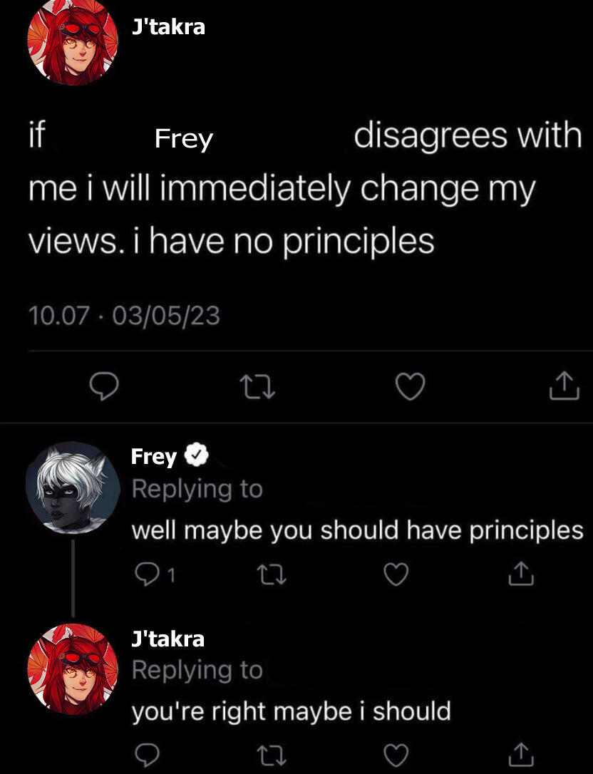 OOC DISCLAIMERSJ'takra may sometimes be mean, or do something horrible. This does not reflect how I feel about you. I'm really chill and kind of shy OOC, and sometimes even get embarrassed over the shit my characters do. (but that's what makes it fun, right?)I'm a reasonable adult, and if you have an issue with a scene we might be doing, don't be afraid to say so and we can work something out. I like to think I'm approachable, and if something IC is making you uncomfortable, we can chat about it and steer the RP away from that topic.I am ACE in real life. I am not interested in anything besides Friendship on an OOC level. Friends are always welcome, but I appreciate that boundary being respected. I am a socially anxious person, regardless of what my character is like, his actions and feelings do not reflect my own. (He's a slut)